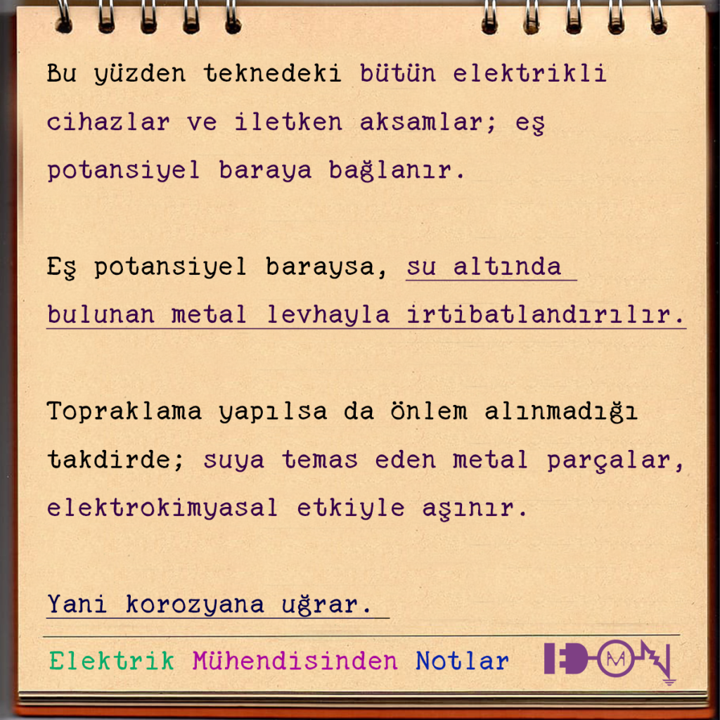 - Cihaz Topraklaması: İlk aşamada, gemi içerisindeki tüm elektrikli cihazlar topraklanır. Her bir cihazda bulunan toprak hatları, merkezi bir noktada toplanarak ana dağıtım panosunun toprak hattına bağlanır.