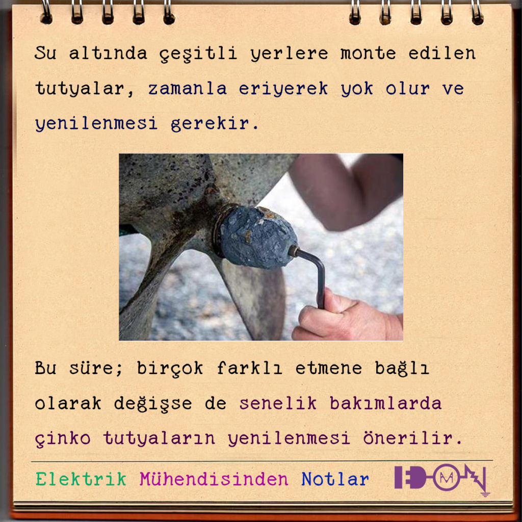 Deniz suyunda, gemi gövdesi ve metal ekipmanlar sürekli bir korozyon tehdidi altındadır. Bu tehdide karşı en etkin mücadele yöntemlerinden biri katodik korumadır. Katodik koruma, farklı metaller arasındaki potansiyel farkından kaynaklanan galvanik korozyonu önlemek için kullanılır.